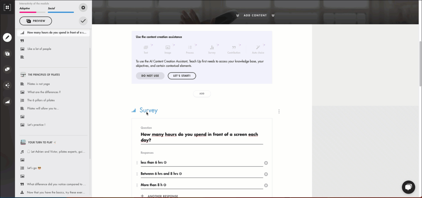 “Add a link”: this option lets you direct participants to external resources for further learning. You can include a link to an article, video, or other relevant material to reinforce the knowledge gained in the course. Simply insert the full URL of the external resource and enter a title, which will appear on the clickable button.