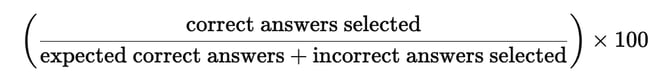 The score for a multiple-choice question with several correct answers is calculated as follows: