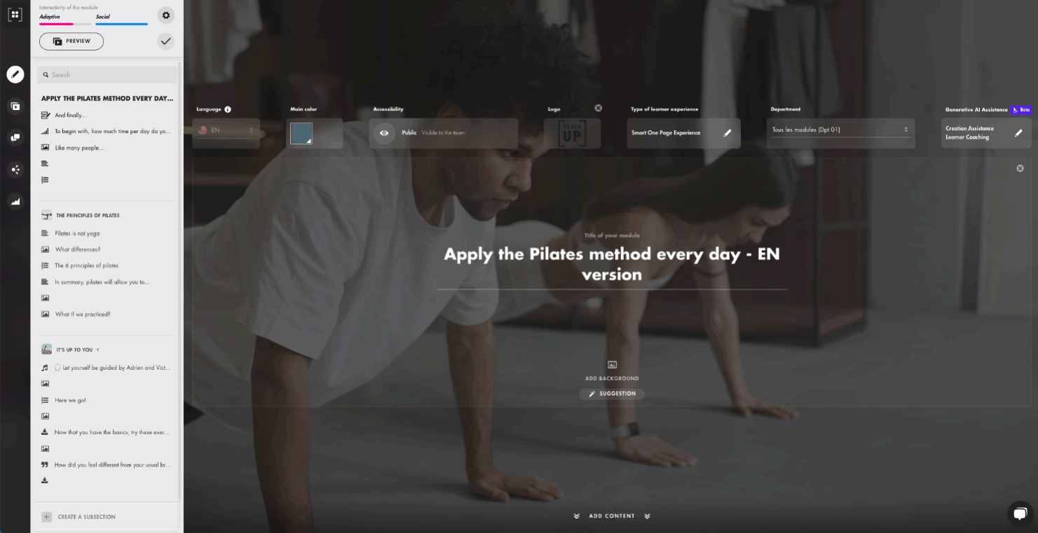 - "Accessible to all connected participants": All participants following the direct access link can access the course with their Teach Up account. Those without an account can create one.