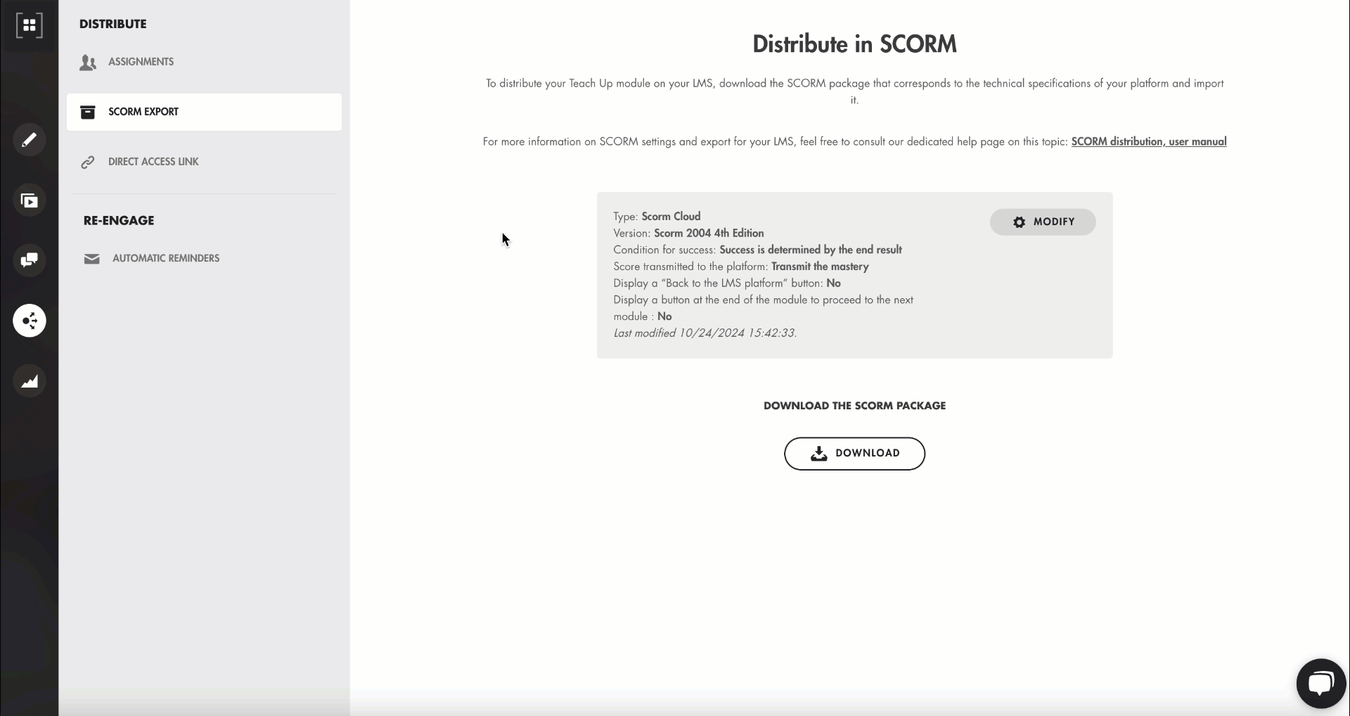 - Download your SCORM package