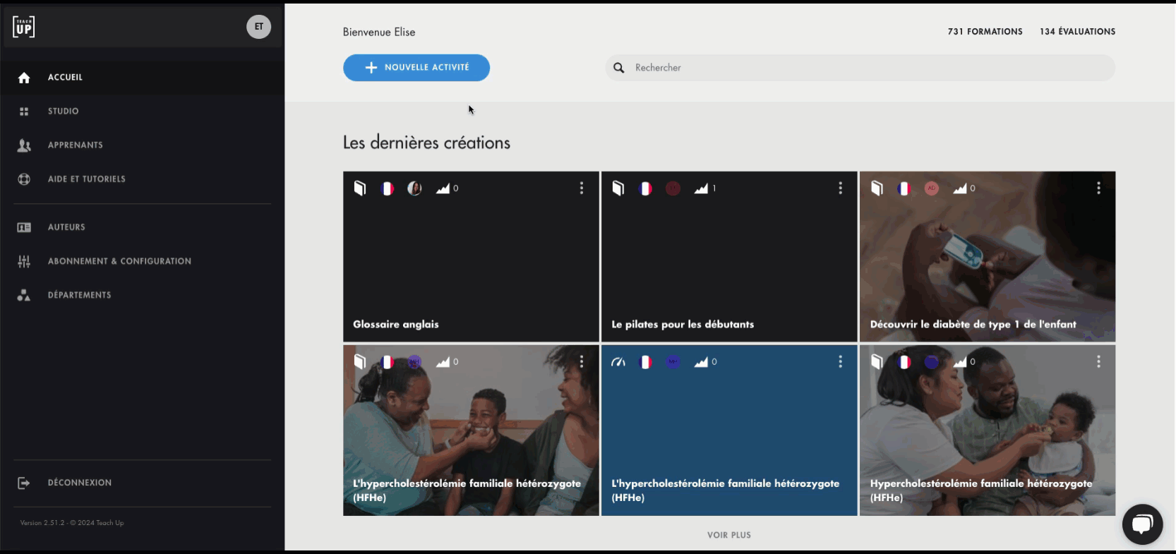 L'onglet Abonnement et Configuration dans Teach Up vous permet de gérer et de suivre l'utilisation de votre abonnement en un seul endroit, facilitant ainsi la gestion des licences pour les concepteurs et les participants.