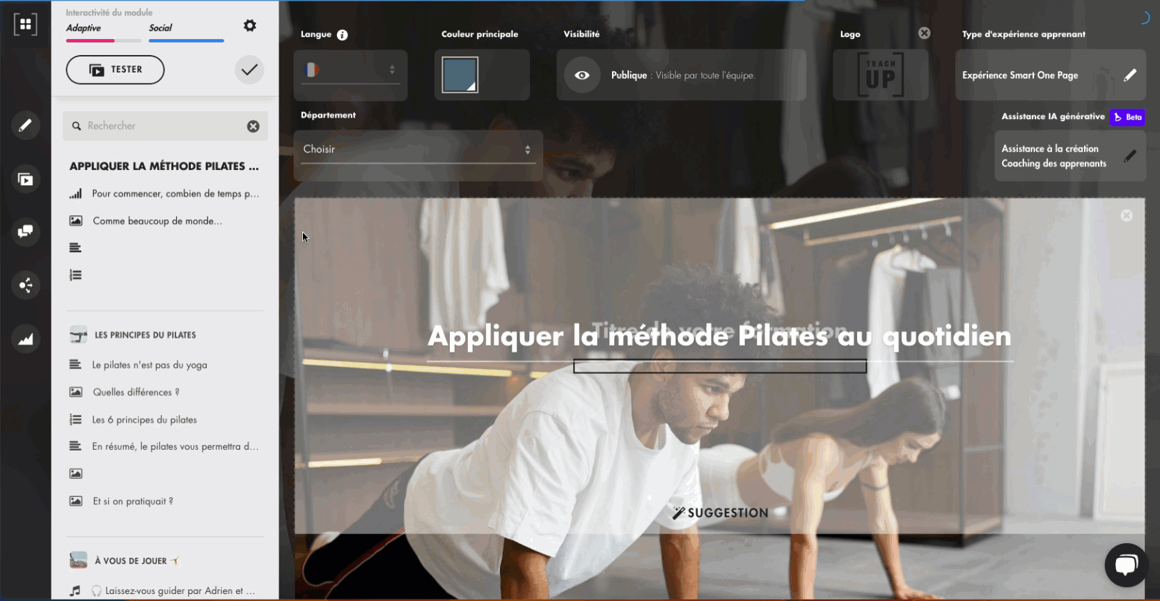 Tous les types d’activités Teach Up peuvent être exportés : modules, évaluations et parcours.