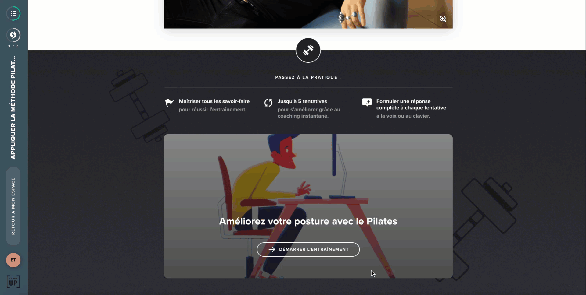 Grâce à l’Entraînement de Teach Up, chaque apprenant s’exerce à son rythme, en temps réel, sur ses gestes métier. À l’écrit comme à l’oral, il progresse concrètement et développe des réflexes directement transférables sur le terrain.