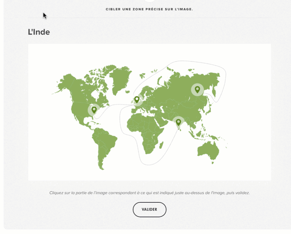 Le participant doit trouver la zone demandée sur l’image et cliquer dessus.
