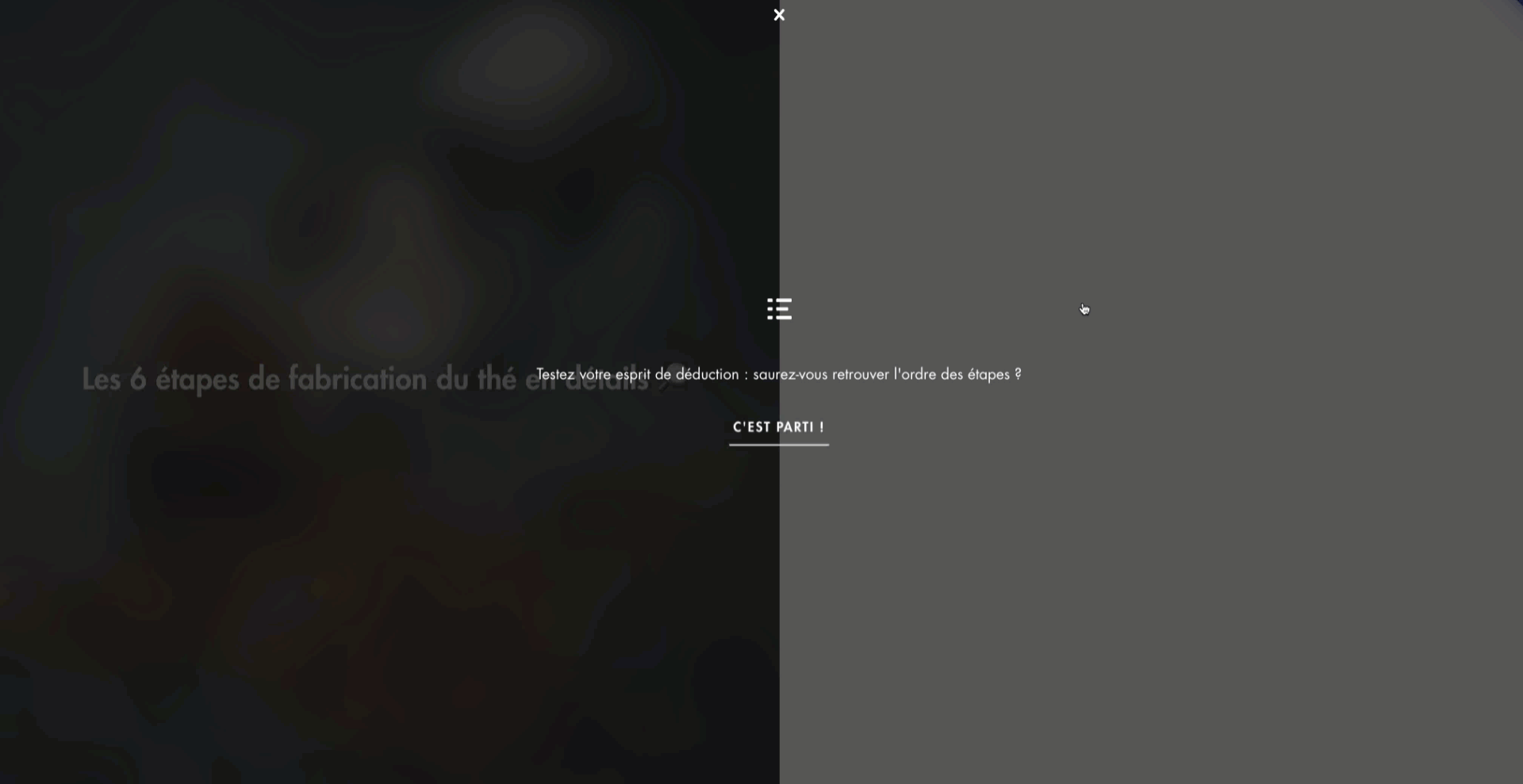 Le participant glisse les propositions à droite (vrai) ou à gauche (faux). Ce format est adapté pour des affirmations à classer en vrai ou faux.